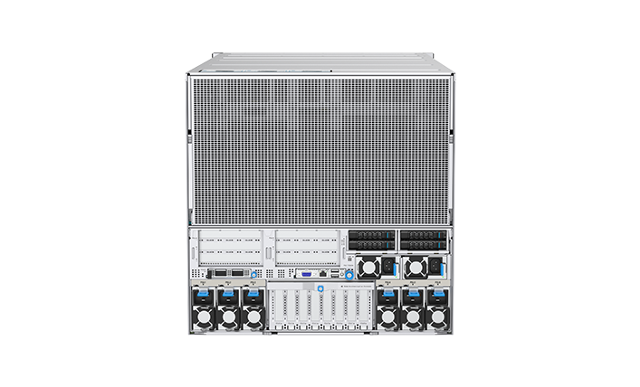 G7A68 X7服务器支持全新8-GPU模组(SXM5和OAM2.0),模块化设计全面提升了整机的散热性和可维护性,使得GPU的强大性能得以充分的发挥:计算单元最大支持2颗英特尔。至强·第六代可扩展处理器,配合多通道8000MT/S DDR5内存技术, 为用户提供高达50%的带宽提升。通过18个PCle5.0插槽和多达29个硬盘插槽的支持,满足各种算力架构方案需求,进一步提升 系统算力性能。可应用大规模训练、高性能计算(HPC)、大型数据中心等各种大算力场景。